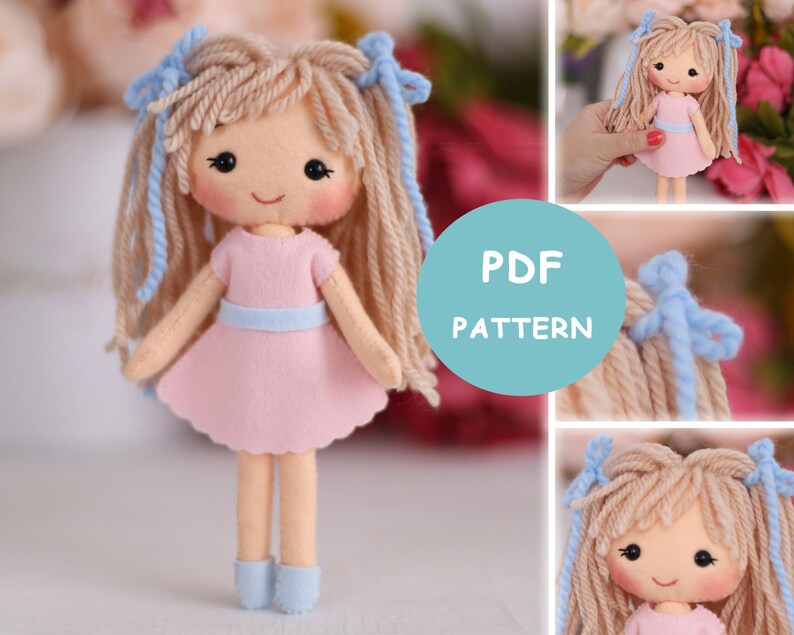 Easy Doll Pattern Felt Doll Patterns Felt Pattern Pdf Etsy - via www.etsy.com